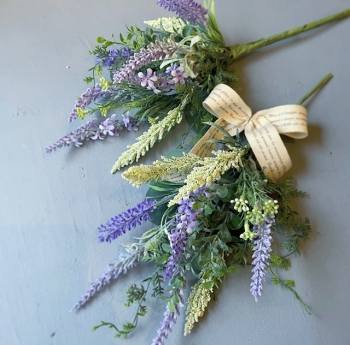 まるで香りが漂ってきそうなラベンダースワッグ。ミックスのラベンダーとグリーンのスワッグを2つ束ねます。組み合わせ方次第でオリジナリティあふれる楽しい作品です。母の日