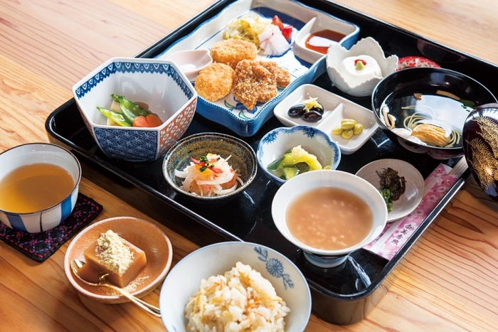 昼食には、明日香村の橘寺で長年精進料理を担当していた西浦左知子さんが、その経験に大宇陀の特産品をプラスして作る、人気の精進料理をお召し上がりください。