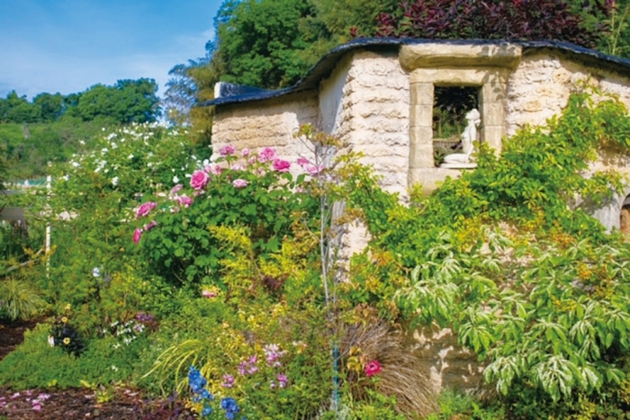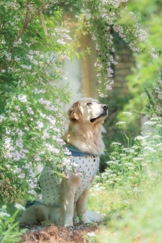 花や緑の植物、樹々とモルタルアートを調和させてつくり上げたイギリス風のガーデン(花工房「花夢花夢」主宰)。絵本の世界に迷い込んだような雰囲気です。このヨーロッパの片田舎にあるような、癒やしの庭を舞台に、愛犬の写真をプロカメラマンの撮影で形に残しませんか。