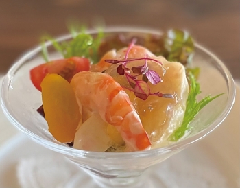 読者特別価格で提供プラス 「桃と小エビのカクテル仕立て」の一皿をプレゼント