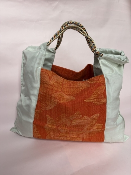 お手持ちの着物や帯をお気に入りのバッグにリメイクしませんか。お好みの形、大きさに講師がその場で裁断。しつけをして、ミシンで縫って仕上げましょう。流行りの紐の持ち手は、帯締めを使います。