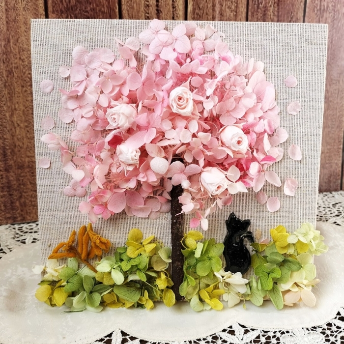 桜とネコのプリザーブドアレンジ/奈良市
