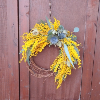 軽量樹脂粘土でデージーを作りませんか。木製のバードハウスにミモザと野いちごをのせて、黄色の優しいアレンジにしましょう。壁に掛けることもできます。お部屋が明るくなり気分もあがりそう。