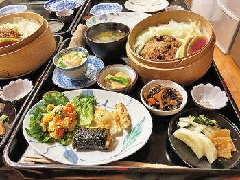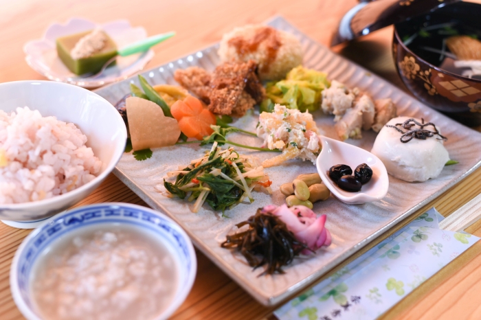 昼食には、明日香村の橘寺で長年精進料理を担当していた西浦左知子さんが作る、人気の精進料理をお召し上がりください。