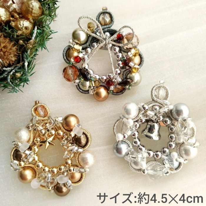 上質なビーズジュエリー『ソウタシエで作るクリスマスリースのブローチ』/奈良市