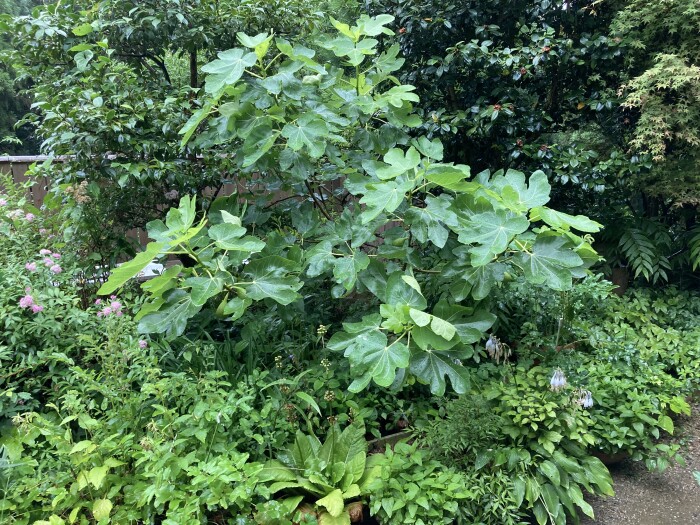 「このイチジクのプランターに隙間があったからヤブカンゾウと寄せ植えしたの。ヤブカンゾウの勢いが強くてね。イチジクが小さくなっちやった」