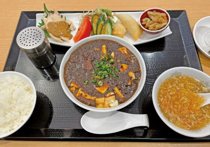 自家製ラー油を使った四川麻婆豆腐が人気のお店。他にはないしっかりとした辛味と香辛料の香りを味わえる。平日限定麻婆豆腐ランチセット1100円は、ライス、スープ、サラダ、ザーサイ、杏仁豆腐付き。