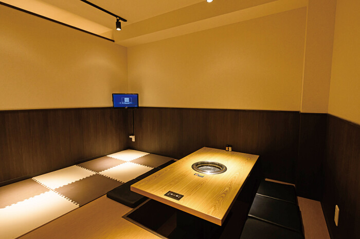 昨年6月にオープンした、あらゆるニーズに応えられる本格焼肉店。ファミリーに人気の直線型レーンが食材を運ぶボックスシートから、落ち着いた雰囲気で半個室にもなるテーブル席や、個室の掘りごたつ席などを完備しています。