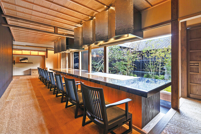 築100年以上の古民家をリノベーション。鉄板焼きは、庭園を望む席を用意。四季の美しい花々を眺めながら味わうランチコースは5000円、7000円、1万円の3種。ステーキは山形牛雌牛で、サーロインまたはフィレを選べる。