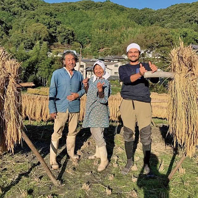 明日香村や橿原、三輪周辺に田んぼを持ち、農薬も肥料も一切使わない栽培方法で、米作りをしている同農園。「私がやっていることは特別なことではありません。自分が食べたいものを作っているだけ。ゆえに、実際、米作りの様子を見たり、関わることで、苦労して作っているんだということをわかってくれる人に買ってほしい」と言います。昨年は1㎏1500円で完売したそうです。「米作りに関心を持つことで、食べることに興味をもち、暮らすとは何ぞやということに気付いて」とも。間もなく収穫の季節。「ぜひ稲刈りを見に来てほしい」と話します。