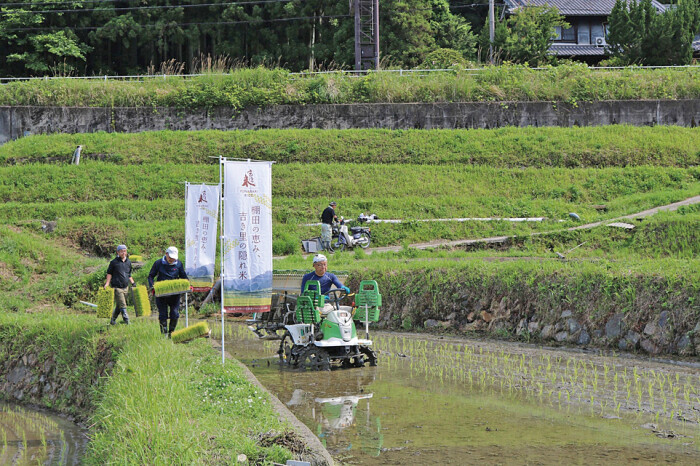 宇陀市との境界にある吉隠(よなばり)地区では古くから稲作が行われ、美しい棚田の風景が残っている。その風景を守ろうと、地域の住民が共同で耕作。土地に高低差があることから、ヒノヒカリのほか、ひとめぼれ、キヌヒカリ、まなむすめを栽培。そのうちヒノヒカリ、ひとめぼれの2品種を「吉隠米」として販売している。