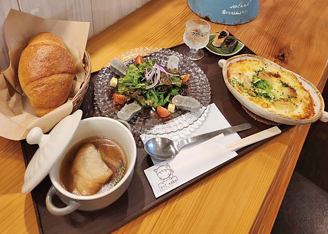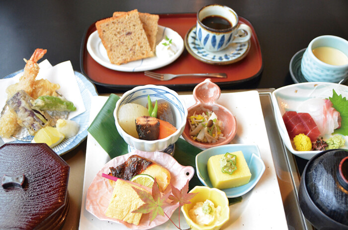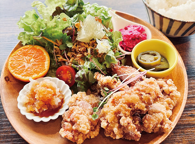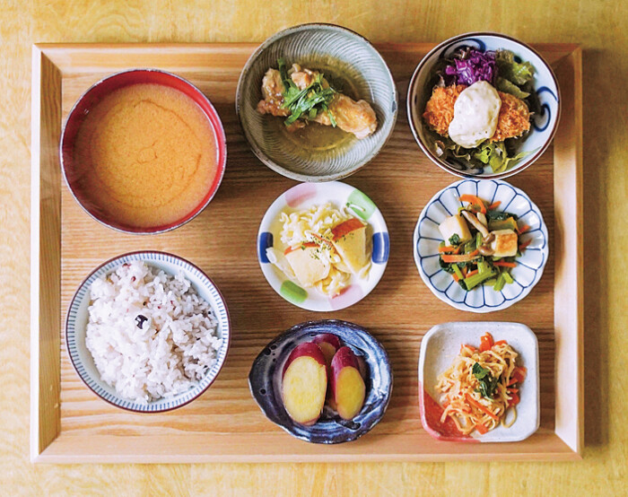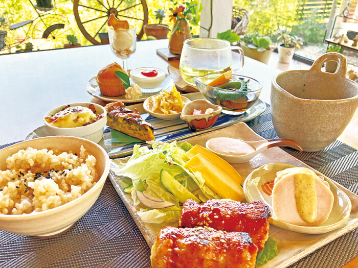 「誰もが安心して食べられる食事を提供したい」というオーナーの思いから、食事はできる限り手作りで。地元産を中心に、生産者の分かる食材を使うよう心掛けているそうです。人気はからだ想いランチ1650円。四国で食べた鯛めしに感銘を受けたオーナーがメニューに取り入れた鯛めし膳1870円もおすすめとのこと。