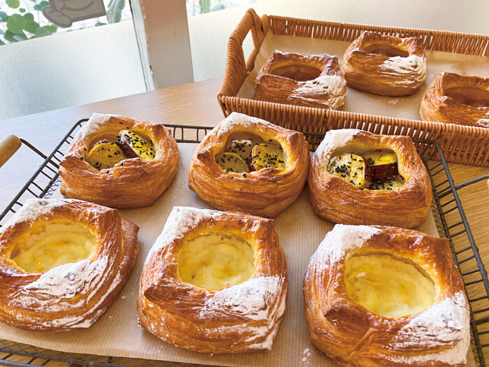 定番のパンや季節ごとのパン、ハード系からふんわりなパンまでいろいろなパンを焼いている同店。近所の人が日々買いに来てくれるのがうれしいと、素材にこだわりつつもシンプルなパンを提供しています。イートインも4席あり、焼きたてを食べたい時、昼食やおやつの時間にも利用できます。