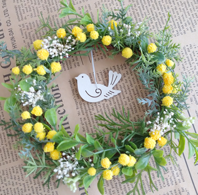 軽量樹脂粘土でミモザを作り、ミニリースに。