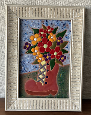 ★ブーツの花額(約19.5×14.5㎝・タイル部分15.0×10.0㎝)