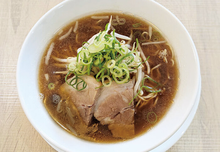 昆布や煮干し、サバ節などの魚介を中心としただしに、カットレモンがそのまま入ったスープ。水にもこだわり、毎日湧き水をくみに行って使用。麺は国産小麦を使ったストレートの細麺で、あっさりしたラーメンに。
