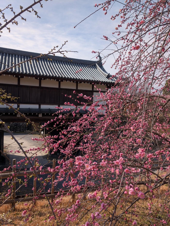 期間中、特別公開の客殿大玄関前に「仙洞紅梅」が見ごろに。