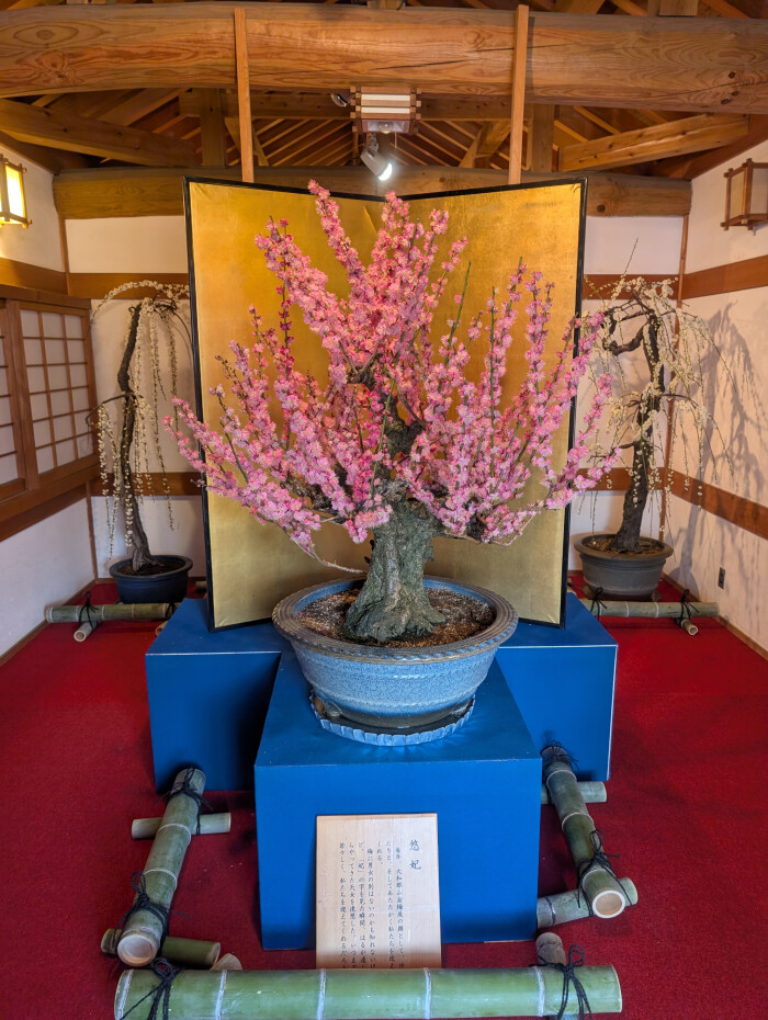 大和郡山市内の愛好家が丹精込めて育てた「盆梅」約120鉢を、日本でも珍しい「お城の櫓(やぐら)」の中という厳かな雰囲気の中で堪能できる。櫓の外のしだれ梅が咲きそろうと、室内外あわせて梅を満喫できる。詳細は大和郡山盆梅展のブログ参照。