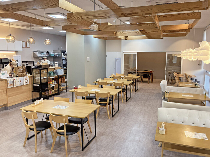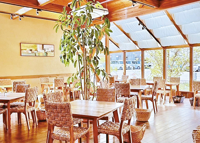 小さなひと粒が芽吹き、自然の恵みをたっぷりと受け、大きく成長した新鮮な野菜をふんだんに味わえるランチを提供しています。白と木目を生かした店内に、ゆったりとテーブルを設置。笑顔のスタッフが出迎えてくれます。できる限り小麦粉を使わず、代わりに米粉を使用。特に米粉を使ったスイーツは、罪悪感なく食べられると、食後に注文して、ゆっくりコーヒータイムを楽しむ人もいるそうです。
