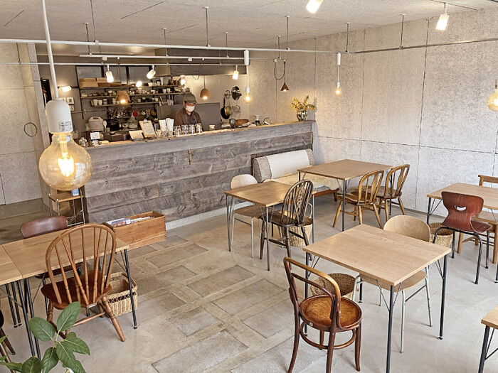 自宅でパン教室を15年以上続けていたオーナーの田中加純さんが、念願のカフェを昨年4月にオープン。アンティークも好きで、店の戸棚やイスもアンティーク調に。好みの雑貨なども置き、来た人が見て楽しい、ウキウキするような店を作りました。季節によって内容が替わるハレマプレートも「見た時にわあっと思ってもらえるように」と、自分が食べておいしい、見て楽しい内容に。野菜もたっぷり使い、女性好みに仕上げています。