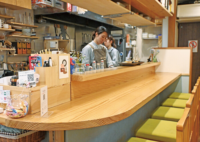 2023年、店舗を広げてリニューアルオープンしました。道に面したガラス張りの大きな窓から入る光で、店内はとても明るく、通りを行き交う人々を見ることができます。