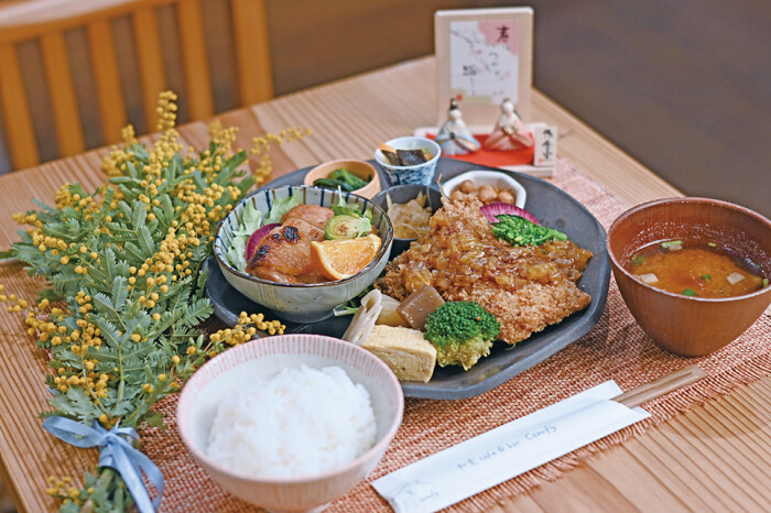 「今日、ちょっとワクワクするごはん」がテーマ。心躍るような料理に笑顔がこぼれます。「大人のお子様ランチ」は、皆が大好きなチキン南蛮やグラタンなどをワンプレートに。彩りよくボリュームも満点です。自家製のタルタルには、刻んだキュウリの漬物やゆで卵が入っていて、味わいと食感が楽しめます。他にも大人シリーズのランチとして「大人のピクニック御膳」など季節に合わせたメニューも。プラス390円で人気のプリンとドリンクをセットすることもできます。また手ごろなアフタヌーンティーもあり、ゆったりとした時間を過ごせます。